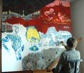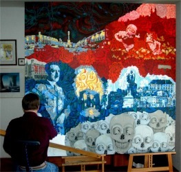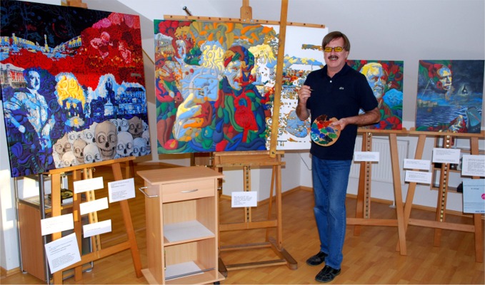 Werner Horvath bei der Arbeit an seinem Linz-Bild für die
