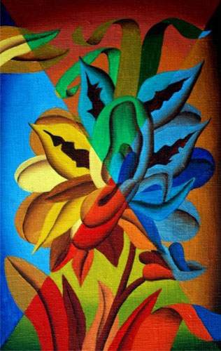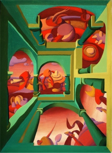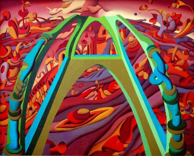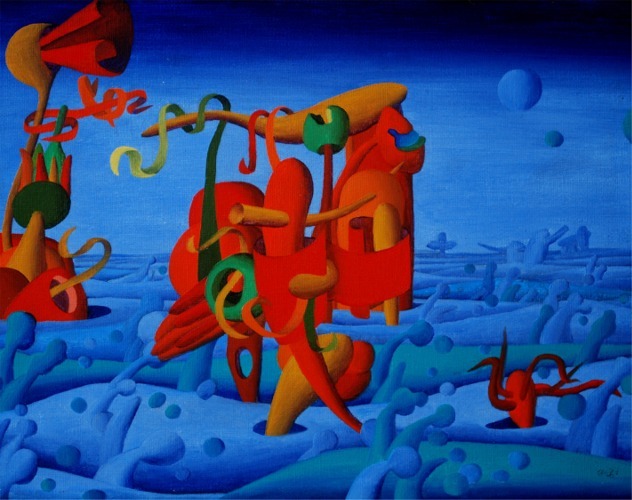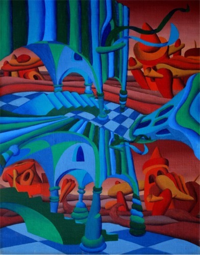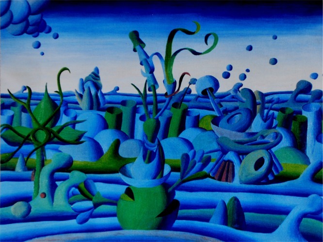 Surrealismus", Öl auf Leinwand, 1970 (Mitte). -