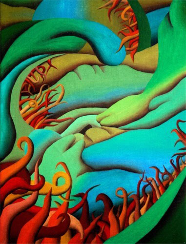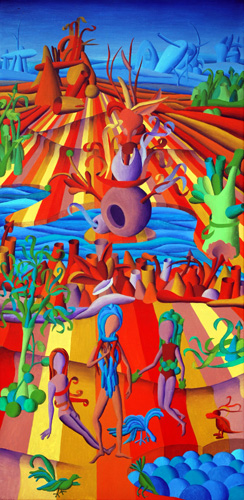 "Würmer im Paradies", Öl auf Leinwand, 1970 (rechts).
