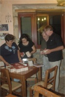 Die Linz 09 - Bierdeckel fanden ihren Weg bis nach Kreta. Unten als Beispiel Fotos einer Präsentation in der Taverne von Kastellos Apokoronas auf der griechischen Insel: