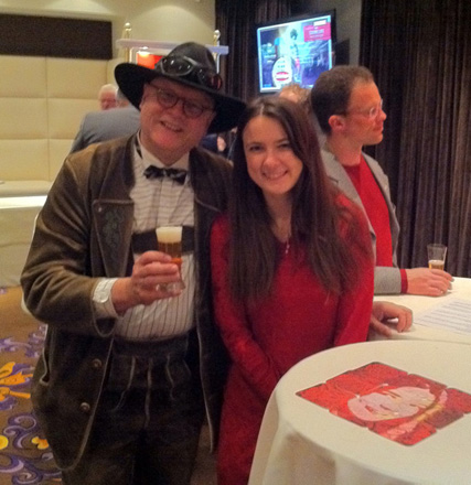 Das Modell Nina Horvath mit dem Bierpapst im Casino Linz.