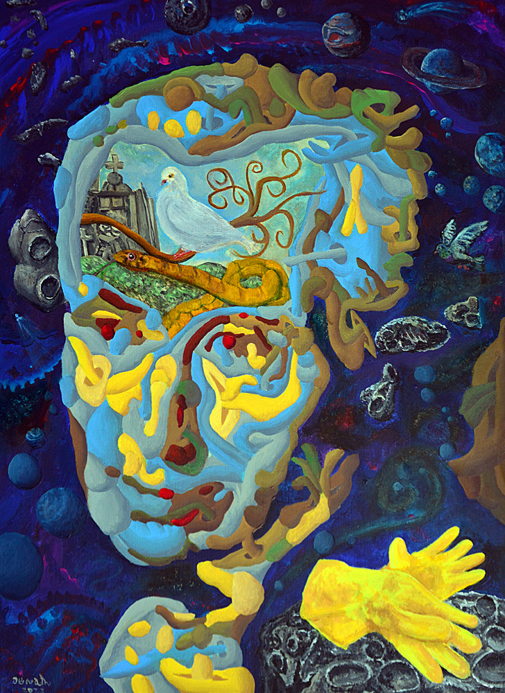 "Das Rätsel der Sphinx". Öl und Acryl auf Leinwand,
