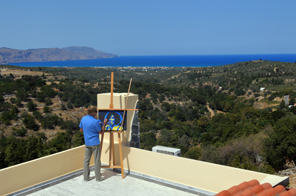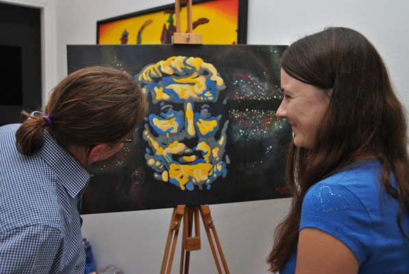 Werner Horvath in der Villa Arte und sein auf dem Treffen "Come Together!" im Juni 2004 geschaffenes Werk: