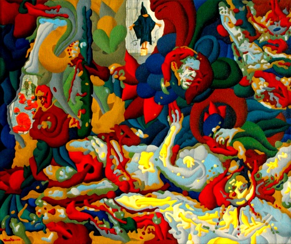 "George Bush Killing Freedom". Öl auf Leinwand, 50 x 60 cm, 2004 in Kreta gemalt.