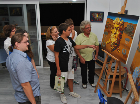 Künstler aus der Region Puchenau bei Linz, Österreich, besuchen die Villa Arte: Unter anderem Gerlinde Mair-Heinschink (zweite von links) und Hansi Schorn (zweiter von rechts).