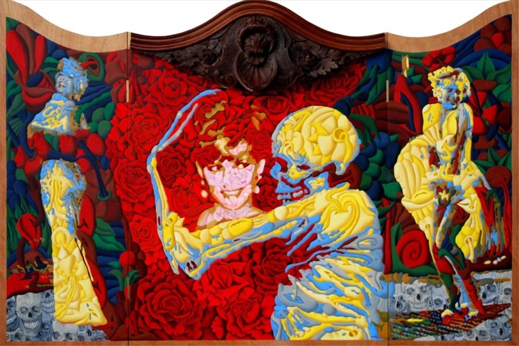 Schwarzenegger - Altar" (re.), beide Öl auf