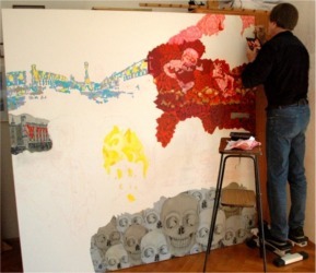 Werner Horvath bei der Arbeit an seinem Linz-Bild für die