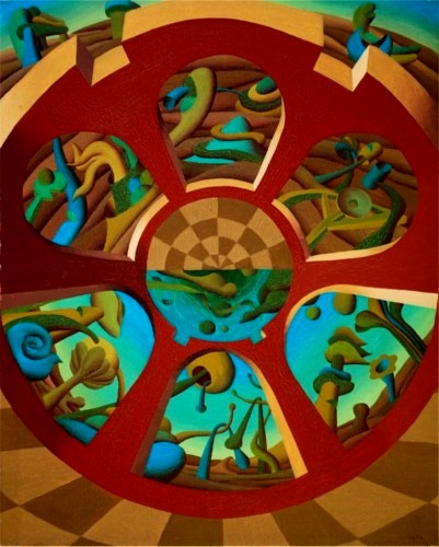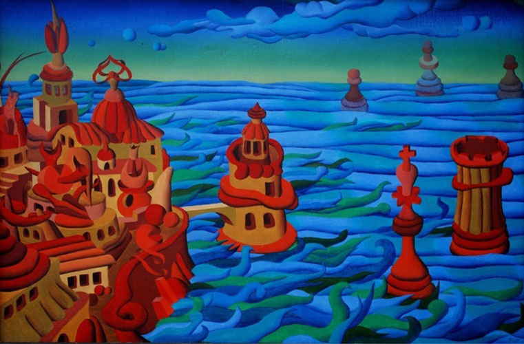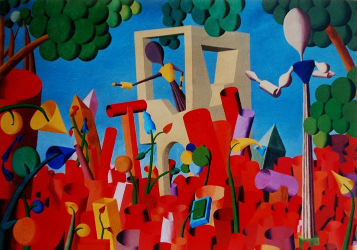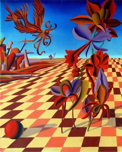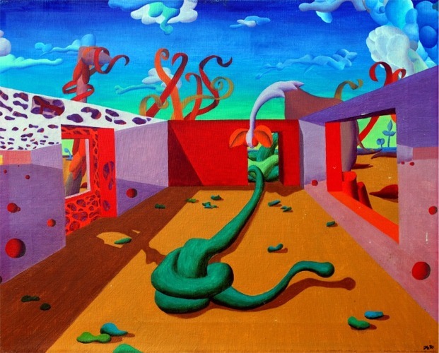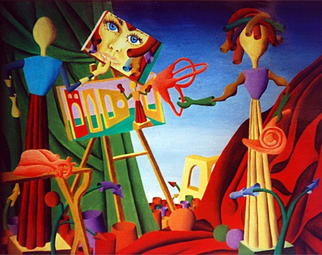 Surrealismus", Öl auf Leinwand, 1970 (Mitte). -