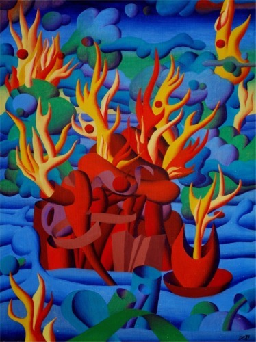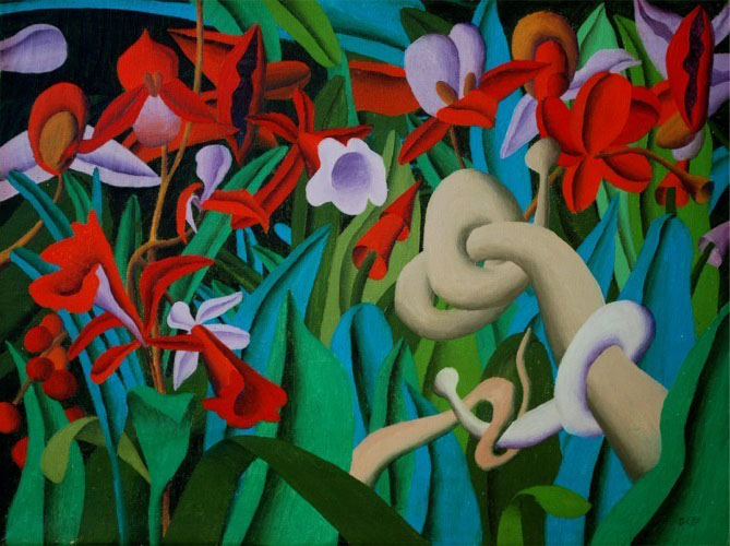 "Würmer im Paradies", Öl auf Leinwand, 1970 (rechts).