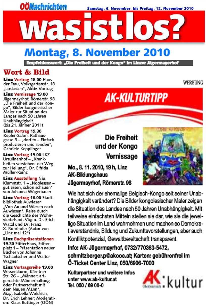 Über die beiden Ausstellungen wurde im ORF berichtet, und zwar im Fernsehen am 7.11.2010 in OÖ heute, sowie am 5.11.2010 in Radio OÖ im Rahmen des Kulturjournals.
