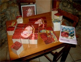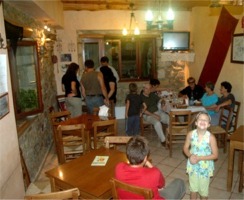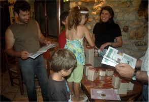 Die Linz 09 - Bierdeckel fanden ihren Weg bis nach Kreta. Unten als Beispiel Fotos einer Präsentation in der Taverne von Kastellos Apokoronas auf der griechischen Insel: