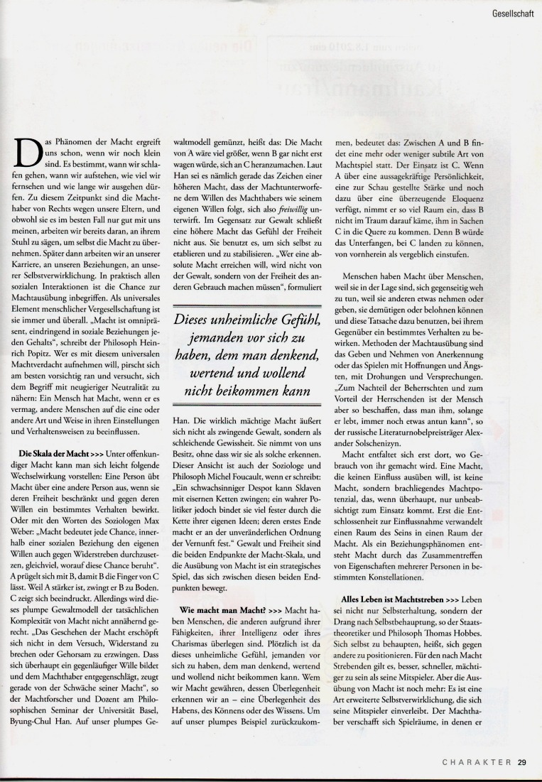 den Artikel "Das Phänomen der Macht" von Vanessa Pegel mit