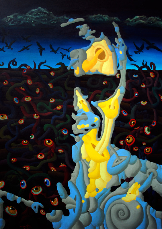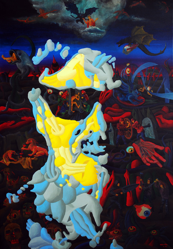 Linker Flügel: "Meine Dämonen". 100 x 70 cm, 2012/13. - Rechter Flügel: "Überwaxht". 100 x 70 cm, 2013.
