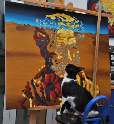 Werner Horvath in der Villa Arte und sein auf dem Treffen "Come Together!" im Juni 2004 geschaffenes Werk:
