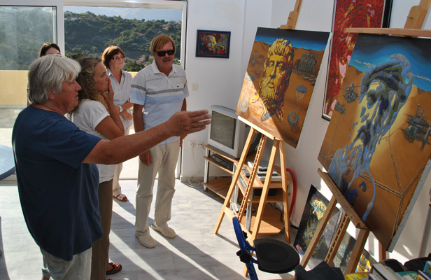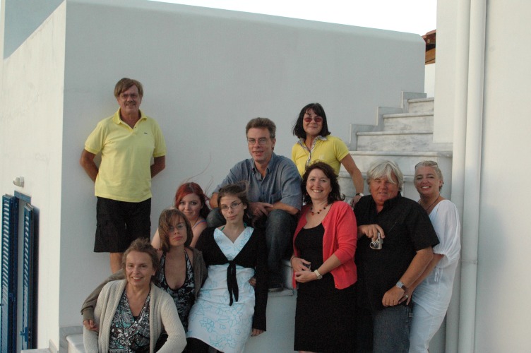 Künstler aus der Region Puchenau bei Linz, Österreich, besuchen die Villa Arte: Unter anderem Gerlinde Mair-Heinschink (zweite von links) und Hansi Schorn (zweiter von rechts).